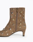 Botín de tacón medio. Detalle de tachas. Acabado en punta. Tacón fino. Cremallera en el lateral interior.